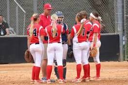Dixie State softball: Trailblazers drop regional opener vs. Central Washington Dixie State softball head coach Randy Simkins (back center) discusses strategy with his infield in a 2-0 loss to Central Washington on Thursday.